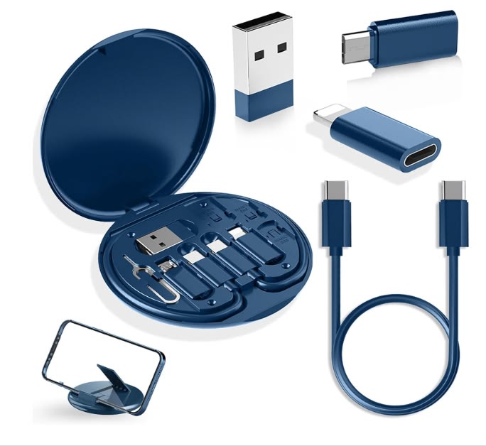 • Also features a phone stand, SIM ejector pin, and adapter slots, making it a perfect travel tech kit. 🔌📱